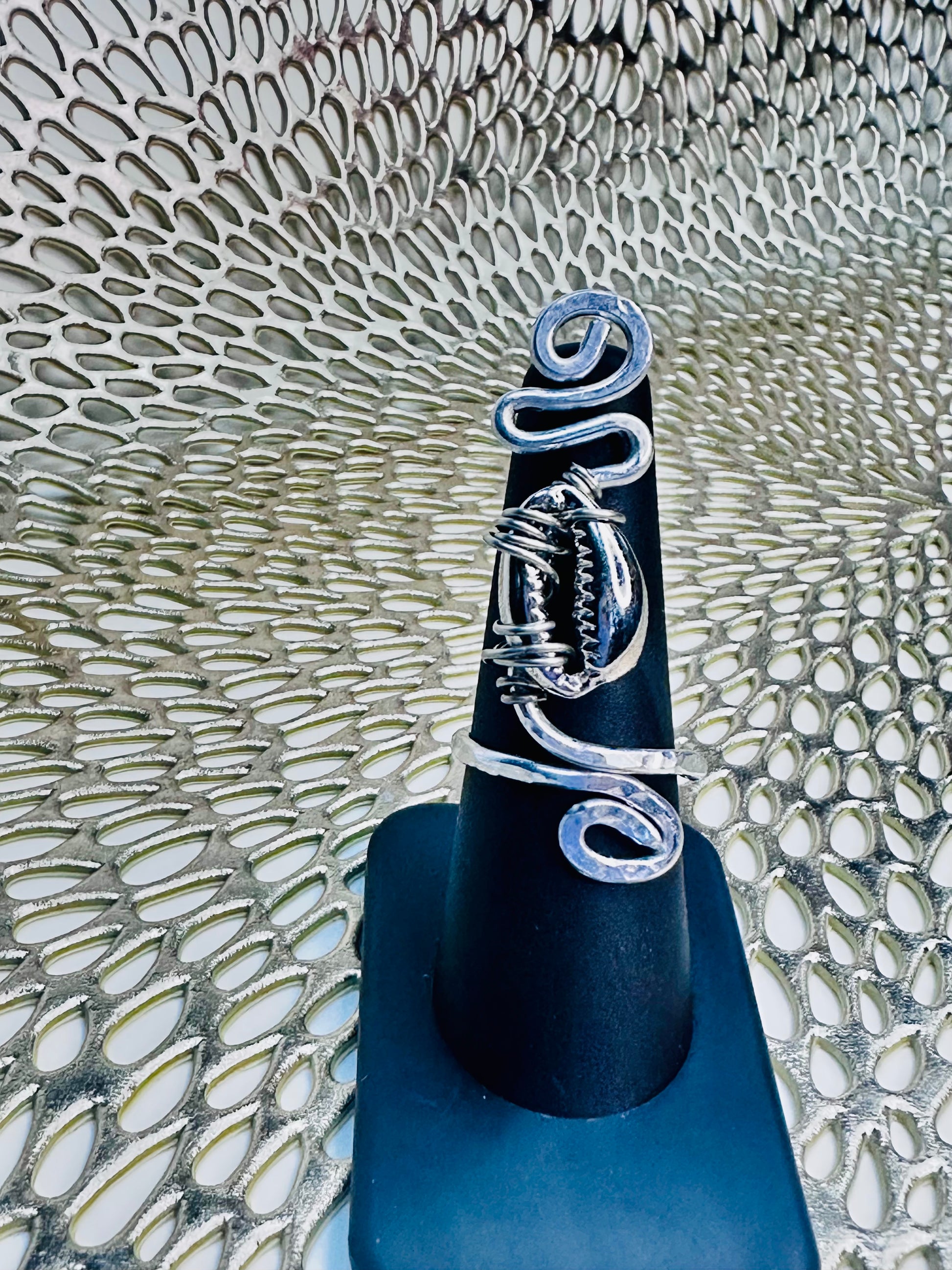 Celebrate tradition and strength with this striking cowrie shell ring, hand-wrapped in silver-plated wire for a bold, artistic finish. The cowrie shell, long revered as a symbol of prosperity, protection, and feminine power, makes this piece more than just jewelry—it’s a statement of culture and connection.